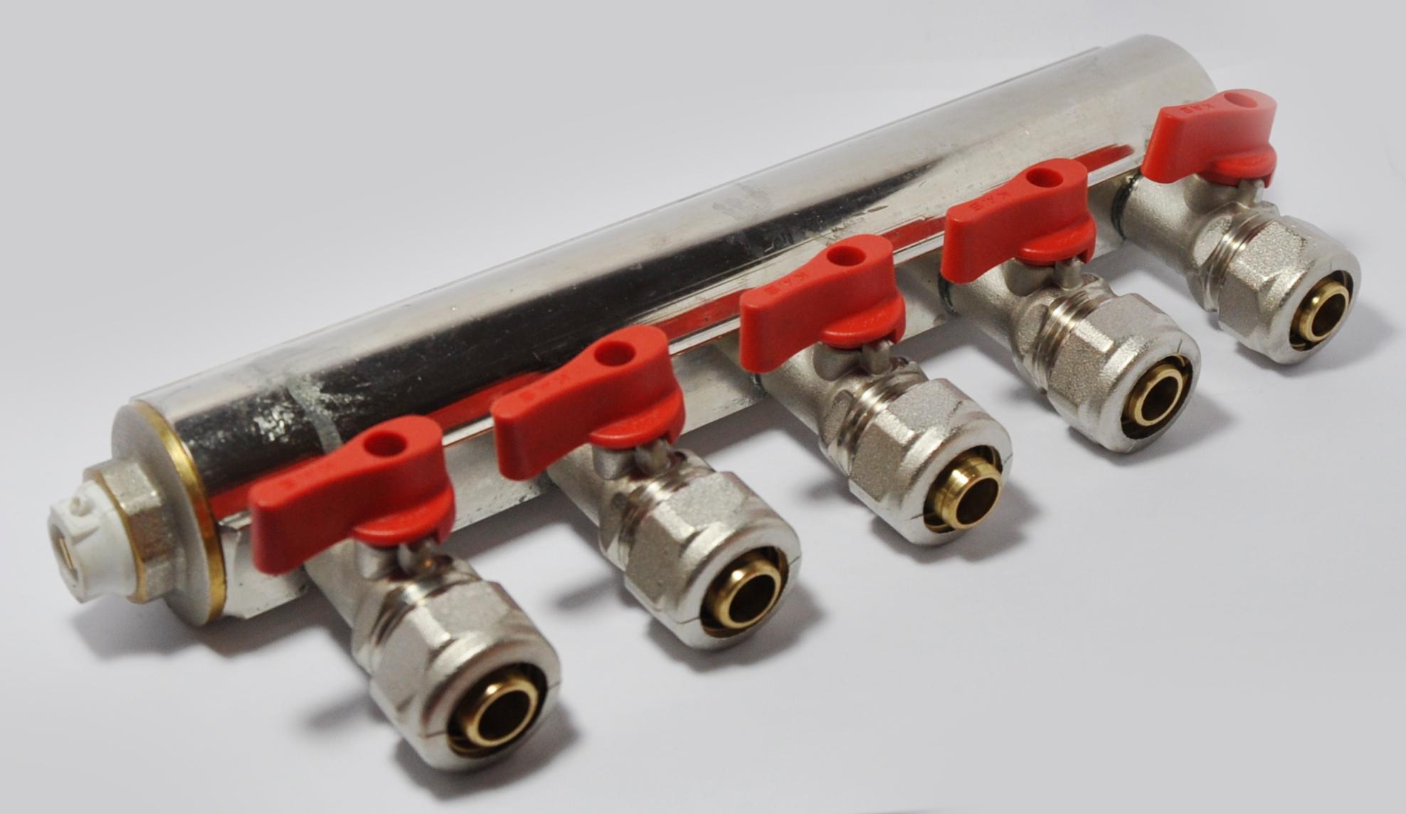 Коллектор D. 1" М/М x 16 PEX 5 выходов (с кранами шаровыми) KAS